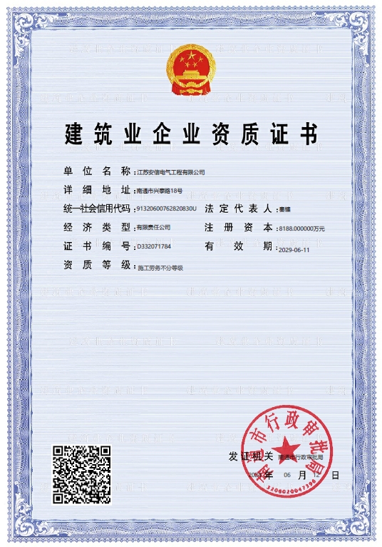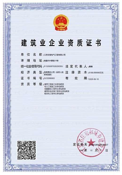 在創(chuàng)業(yè)之初,公司就堅(jiān)持高起點(diǎn)的戰(zhàn)略思路,廣納賢才,集聚行業(yè)精英,創(chuàng)新發(fā)展,做優(yōu)企業(yè)品牌。現(xiàn)已取得:承裝二級(jí)、承修二級(jí)、承試二級(jí),電力工程施工總承包二級(jí),輸變電工程專(zhuān)業(yè)承包二級(jí),建筑工程施工總承包二級(jí),建筑機(jī)電安裝專(zhuān)業(yè)承包二級(jí),地基基礎(chǔ)專(zhuān)業(yè)承包二級(jí)資質(zhì)證書(shū),并通過(guò)了質(zhì)量、環(huán)境、職業(yè)健康和安全管理體系認(rèn)證,確保各項(xiàng)工作有序管控。